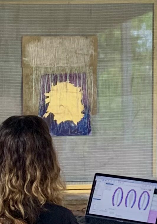 In parallel, and as a third sequence, a small empirical somatic study was undertaken: two unfamiliar viewers were exposed, separately, to each painting, one by one, for a few minutes at a time, their energetic responses captured through a Biowell device.