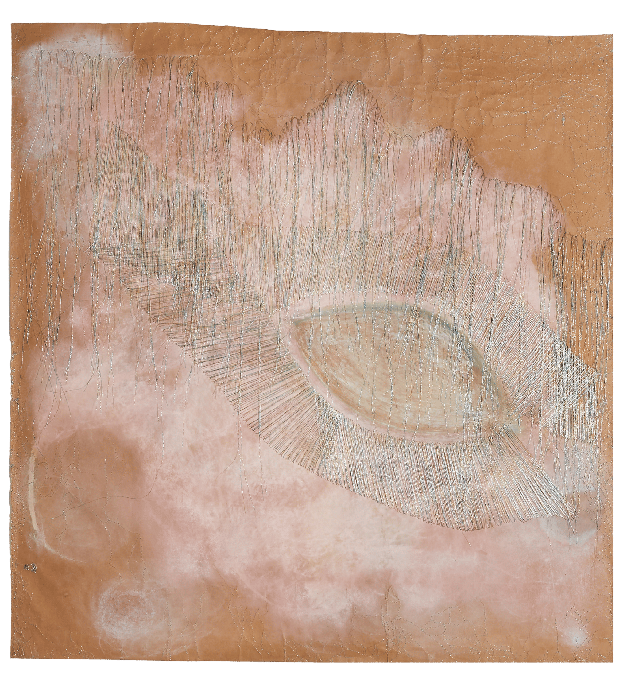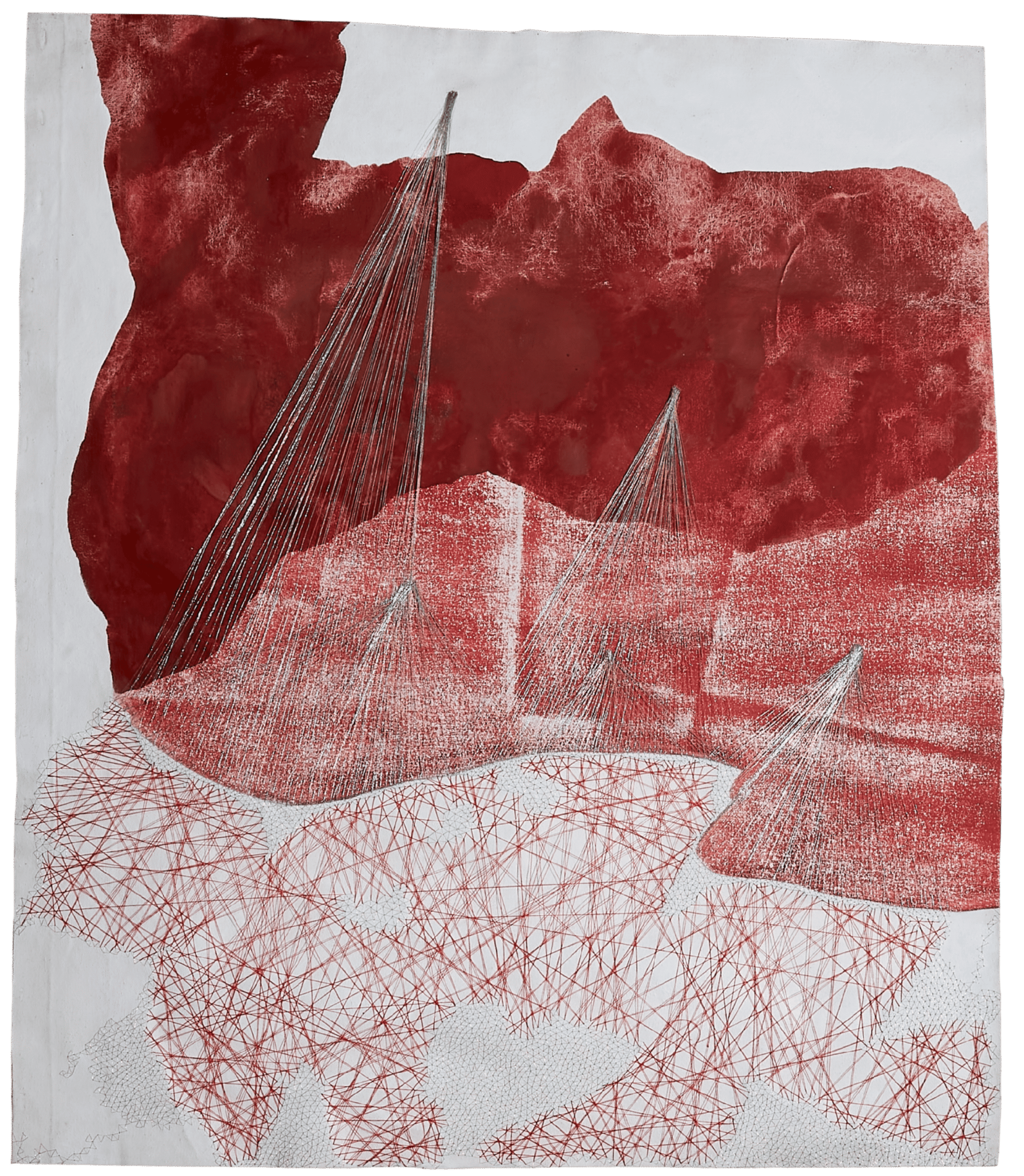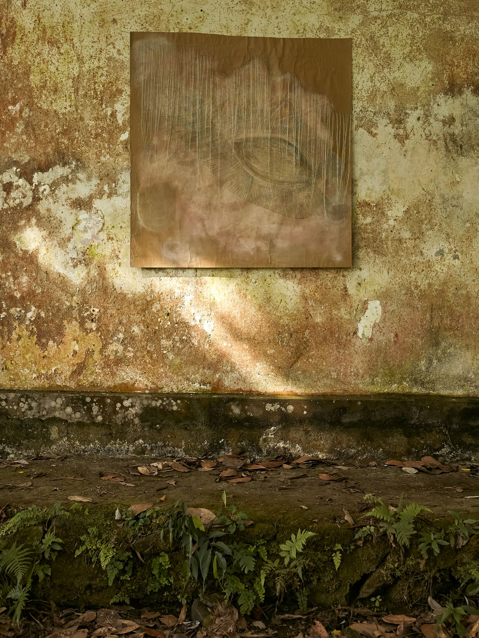 Each work unfolds through layers of pigment and their colour resonance, through threads and the quiet persistence of touch in hand stitched gestures: processes and marks that invite a sustained encounter.