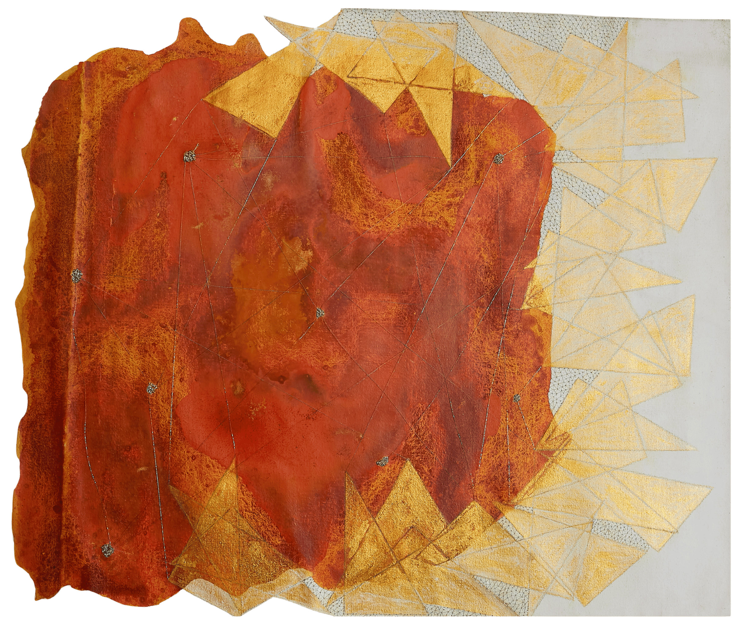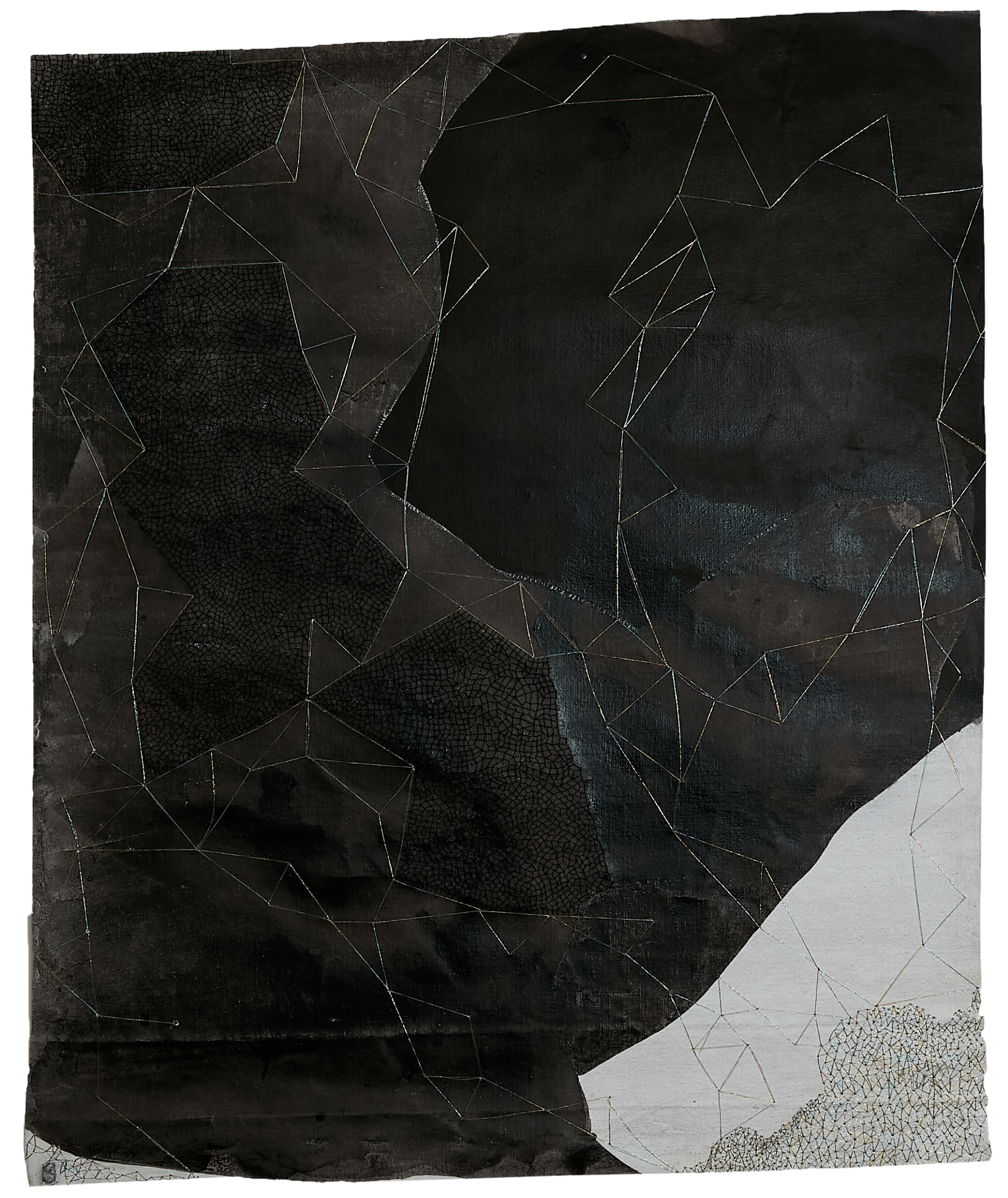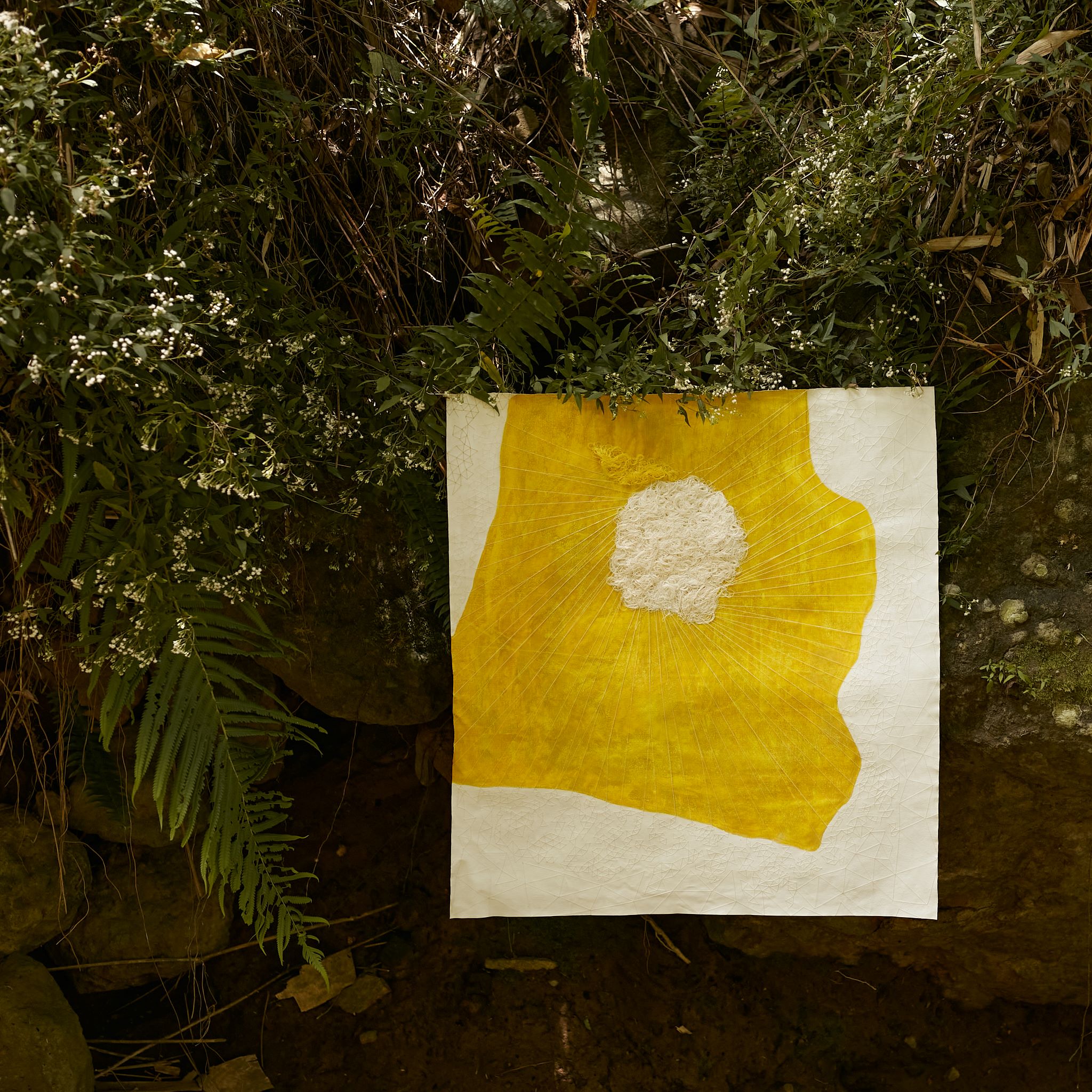 Each work unfolds through layers of pigment and their colour resonance, through threads and the quiet persistence of touch in hand stitched gestures: processes and marks that invite a sustained encounter.