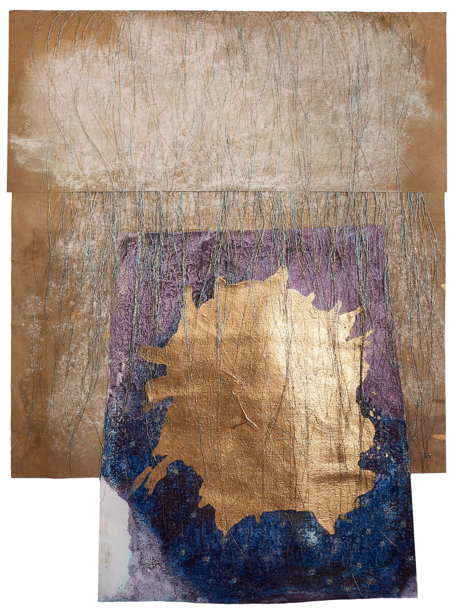 acrylic, pastel & thread on loose canvas & paper