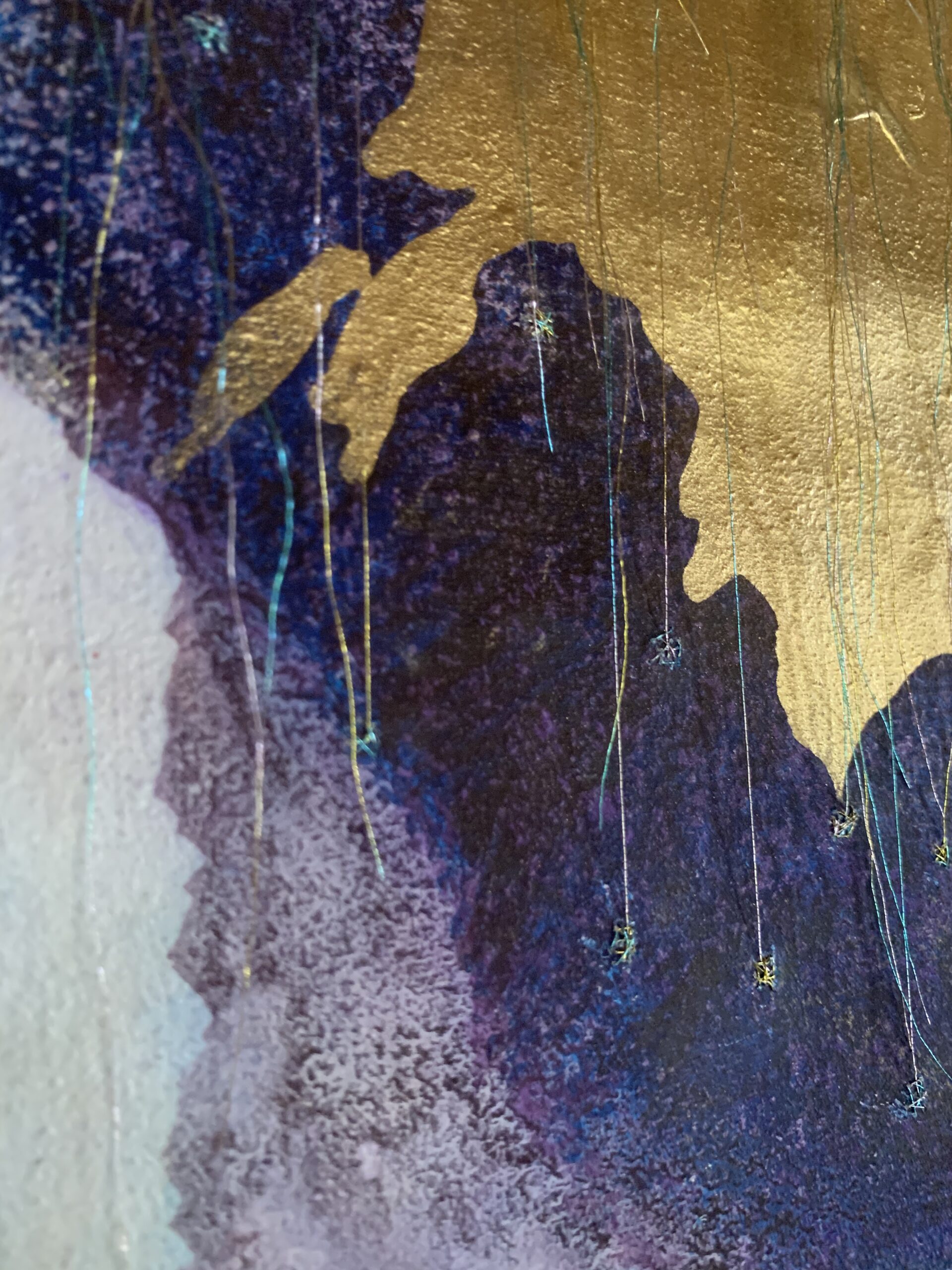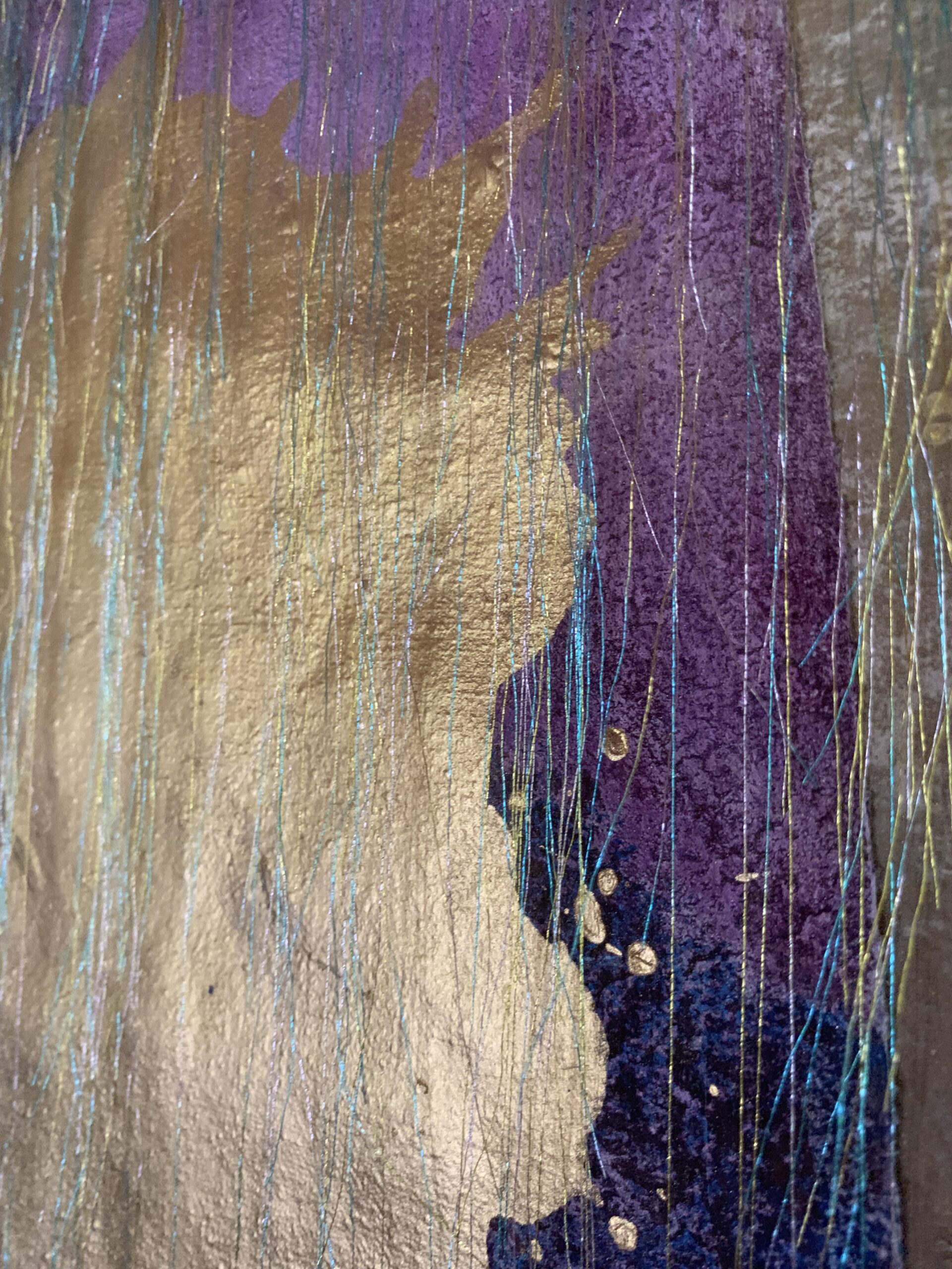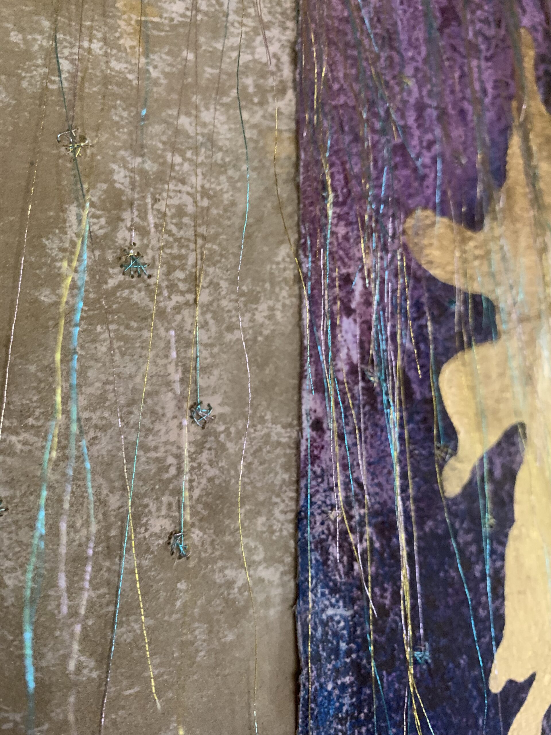 acrylic, pastel & thread on loose canvas & paper