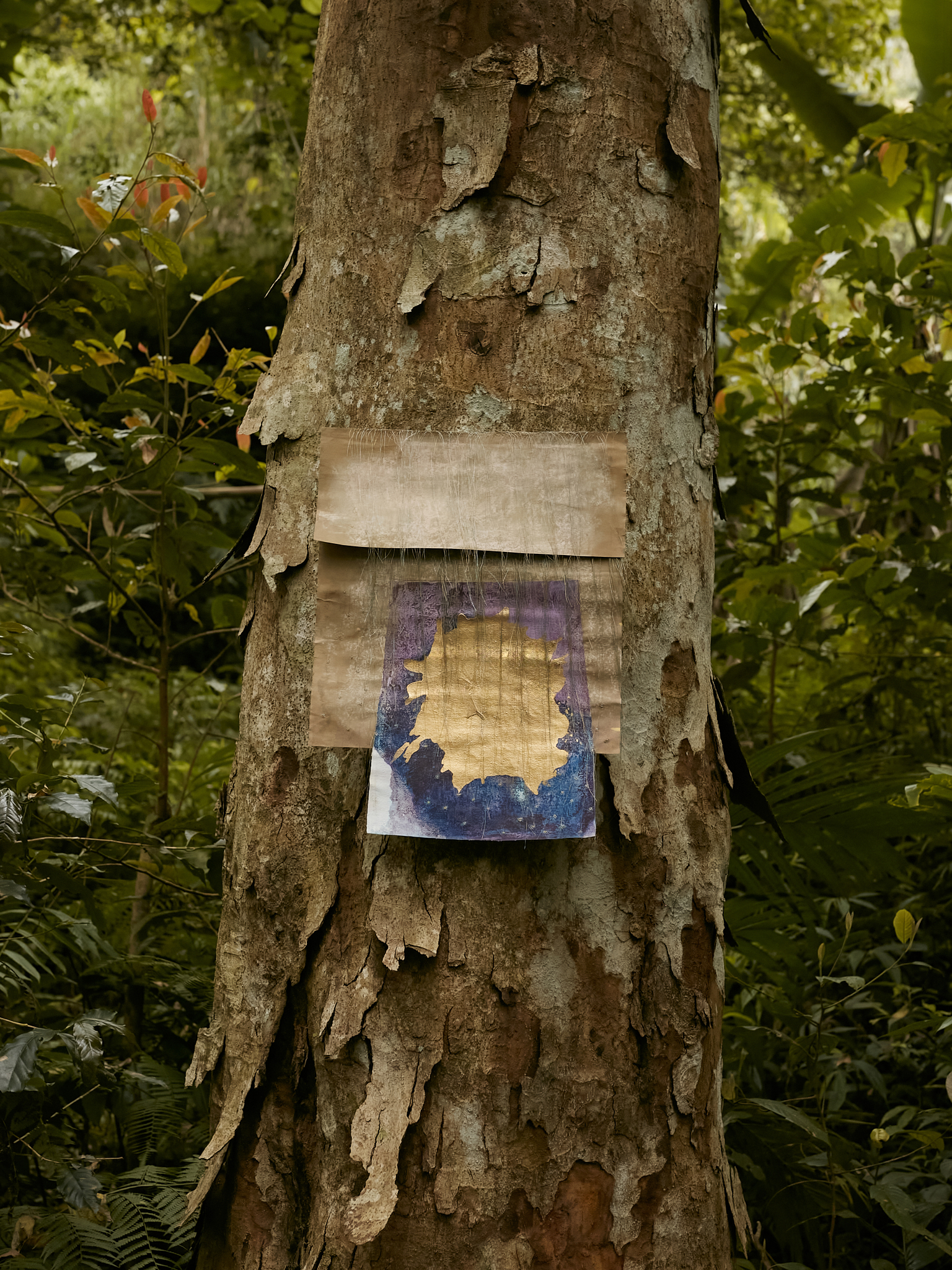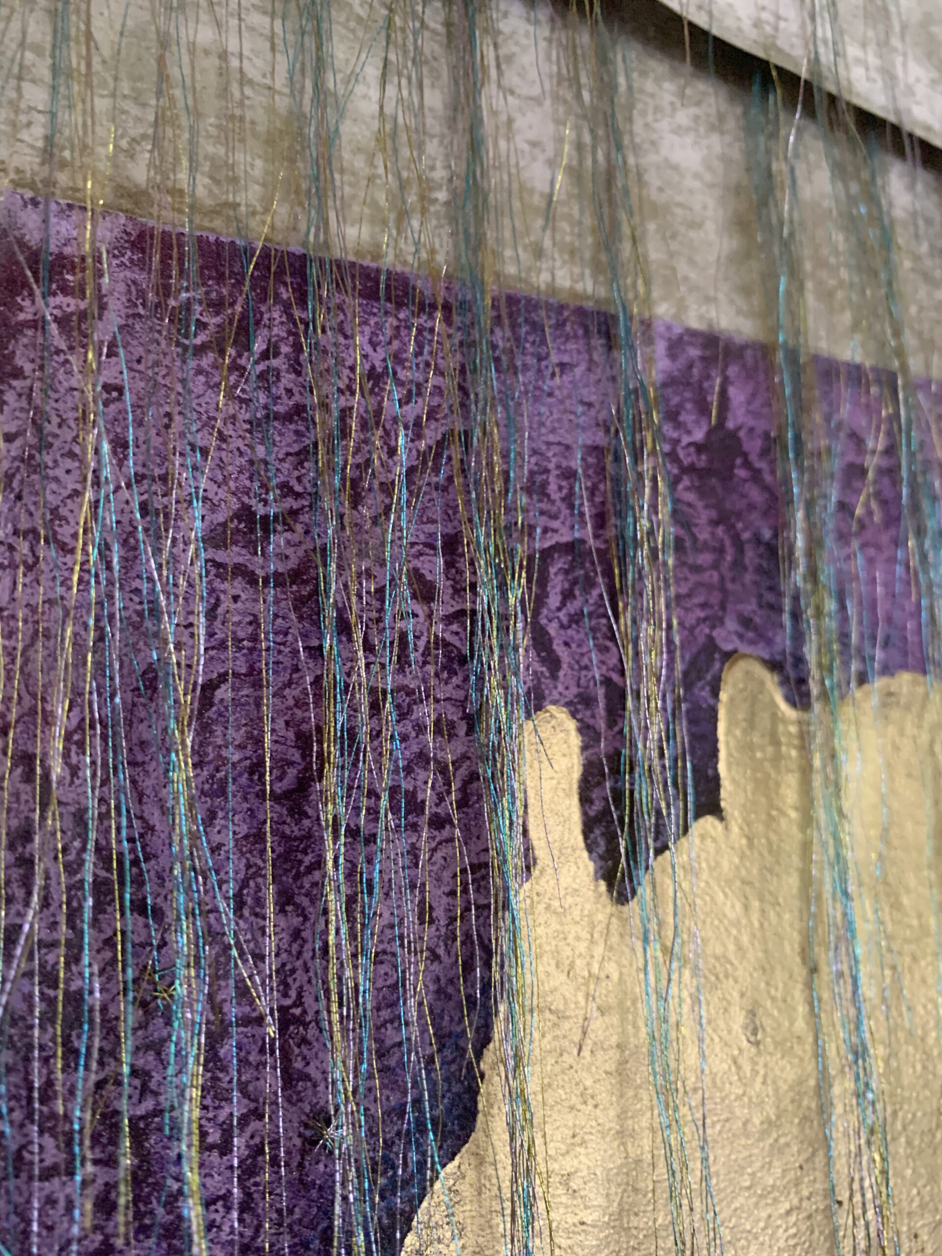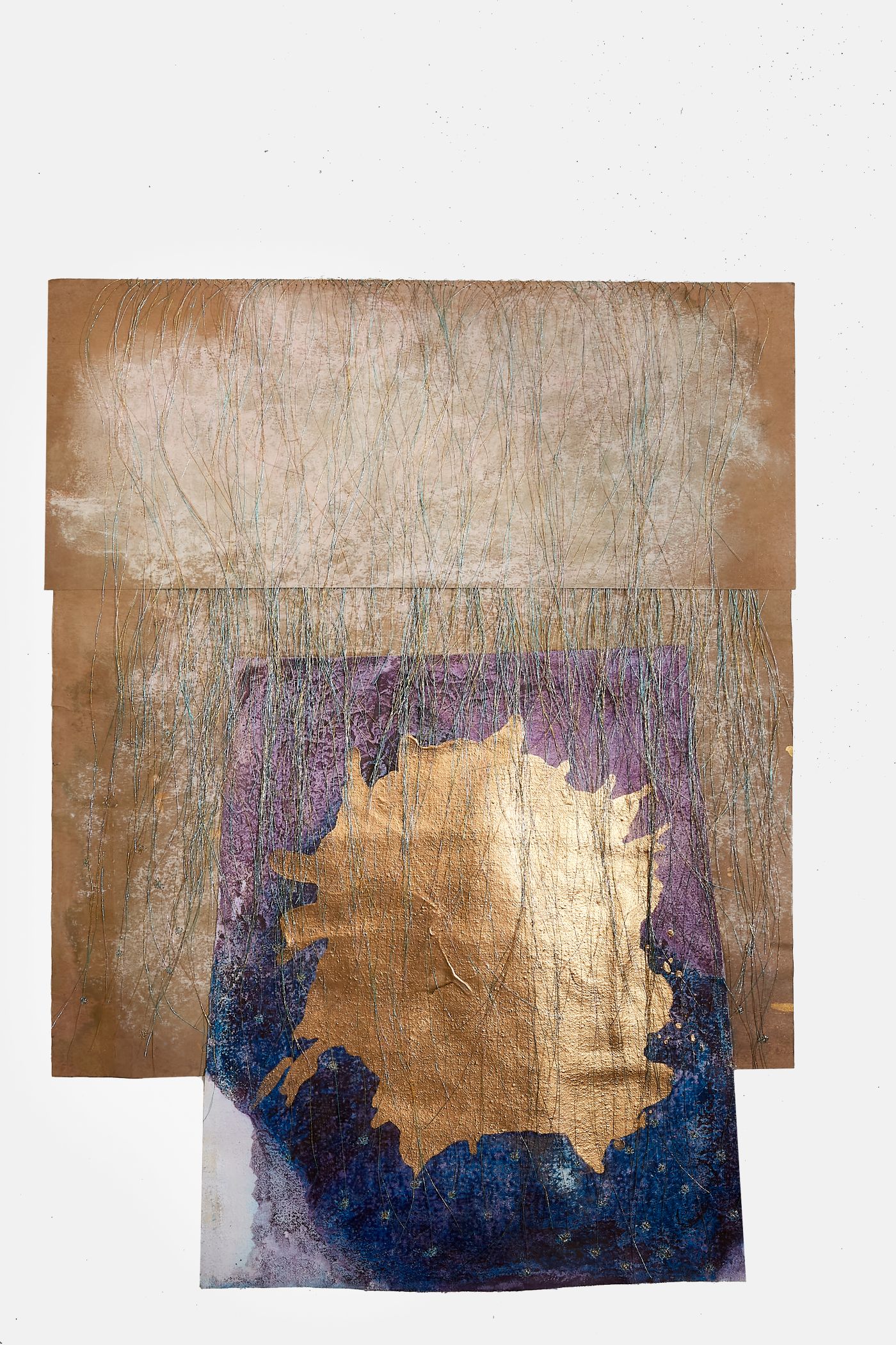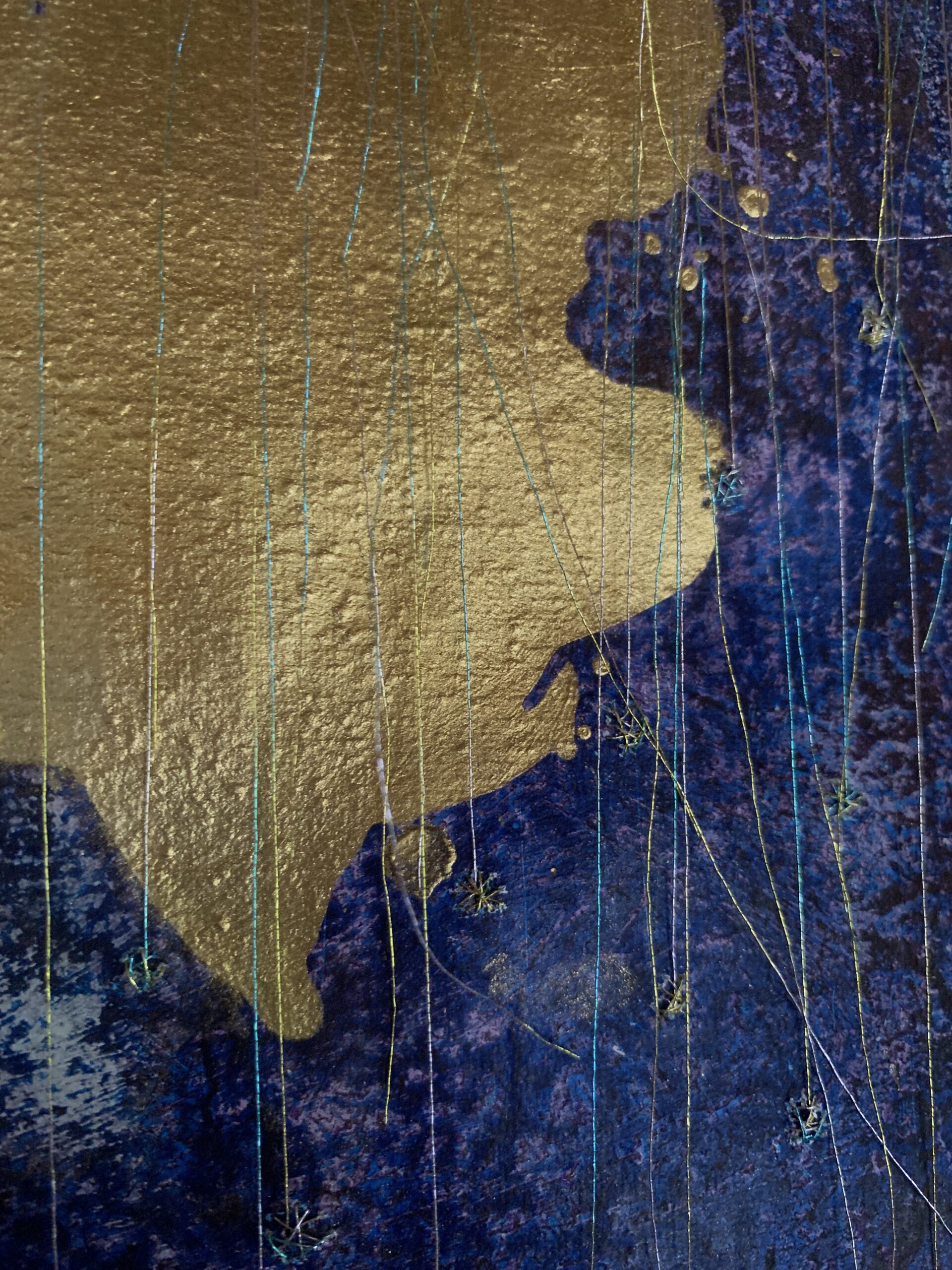 acrylic, pastel & thread on loose canvas & paper