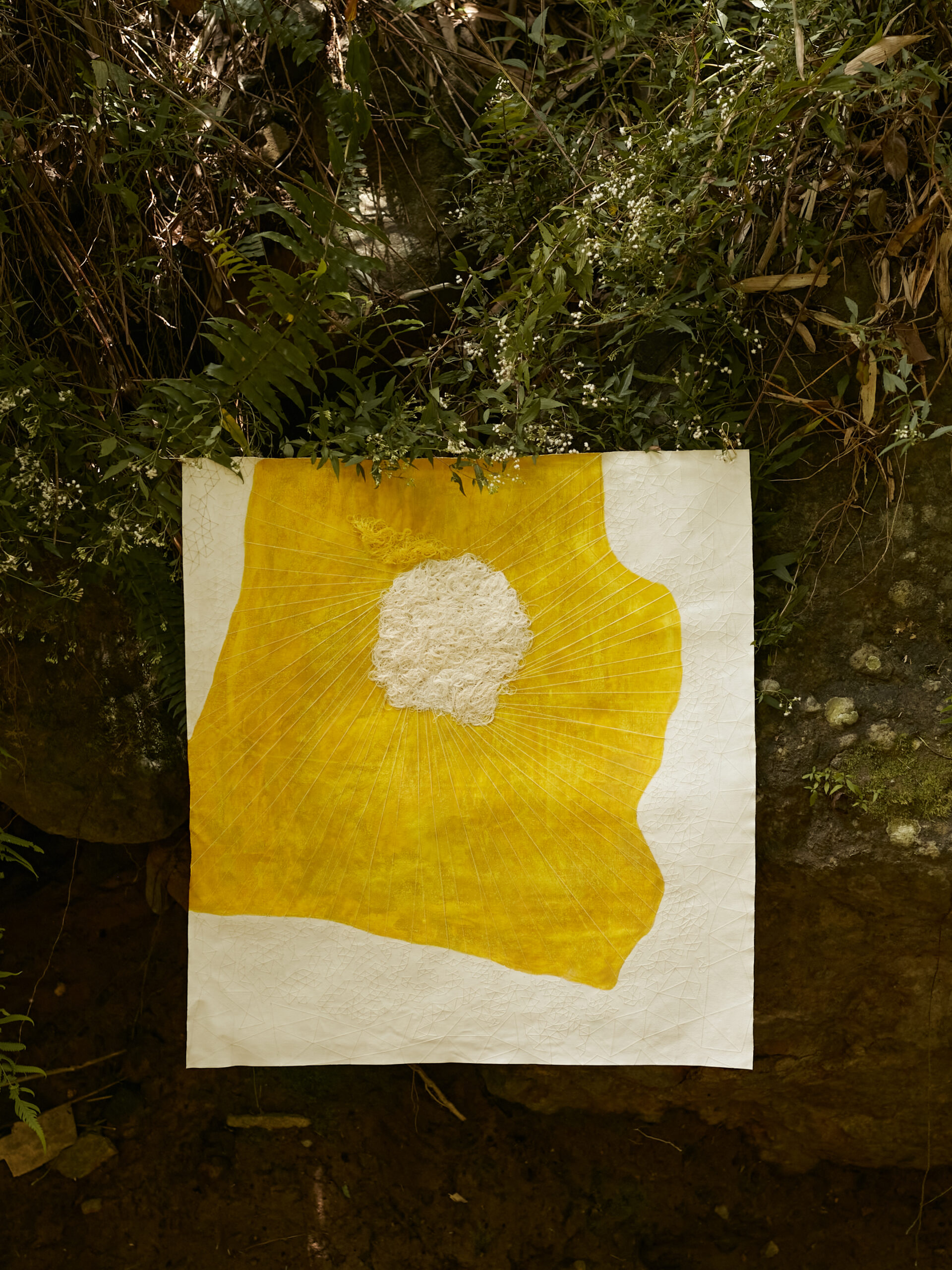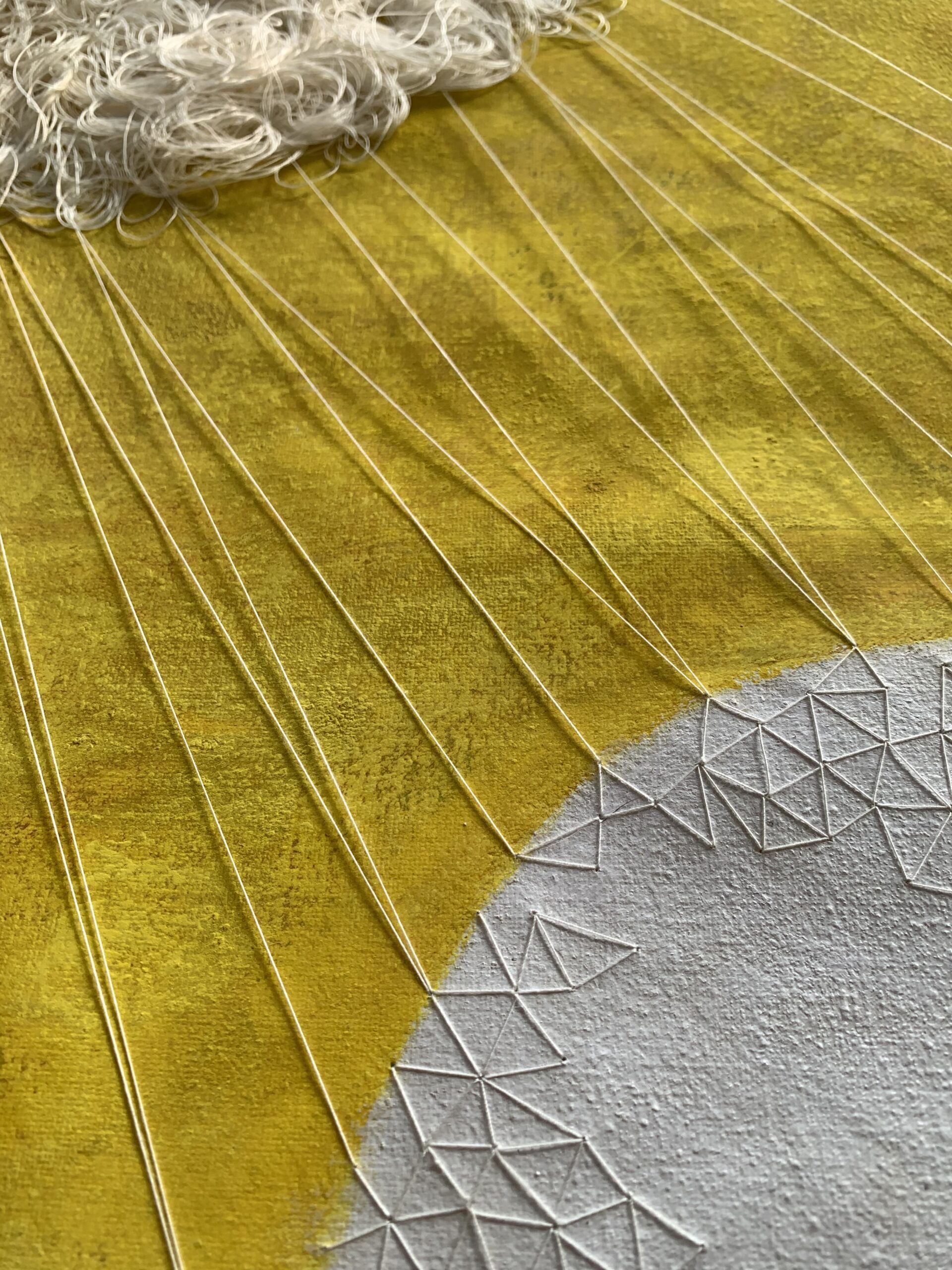 acrylic, pastel & thread on loose canvas