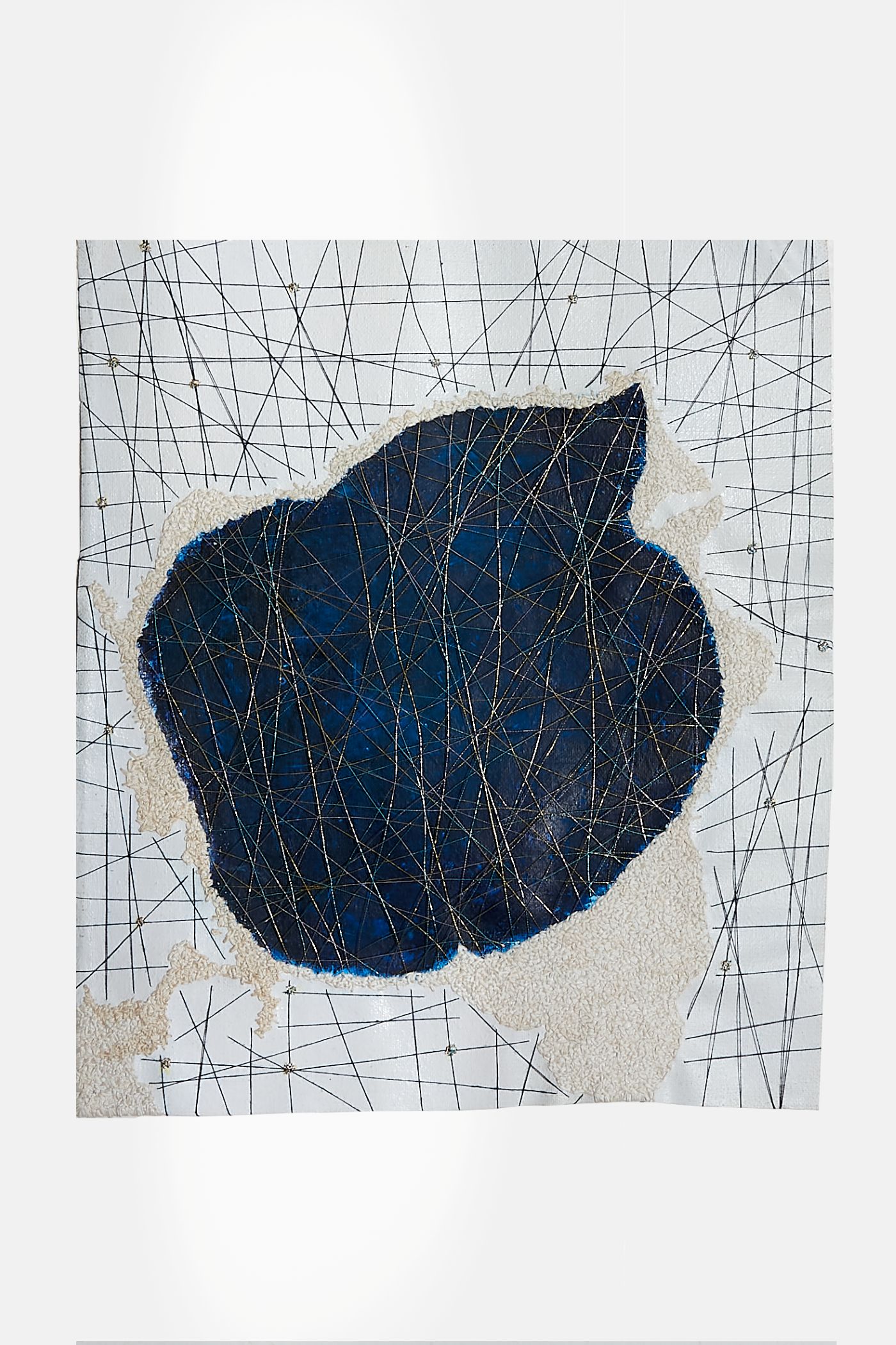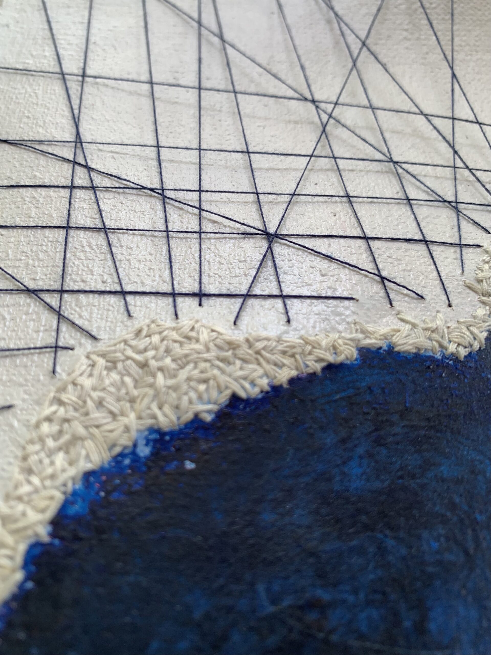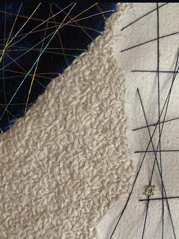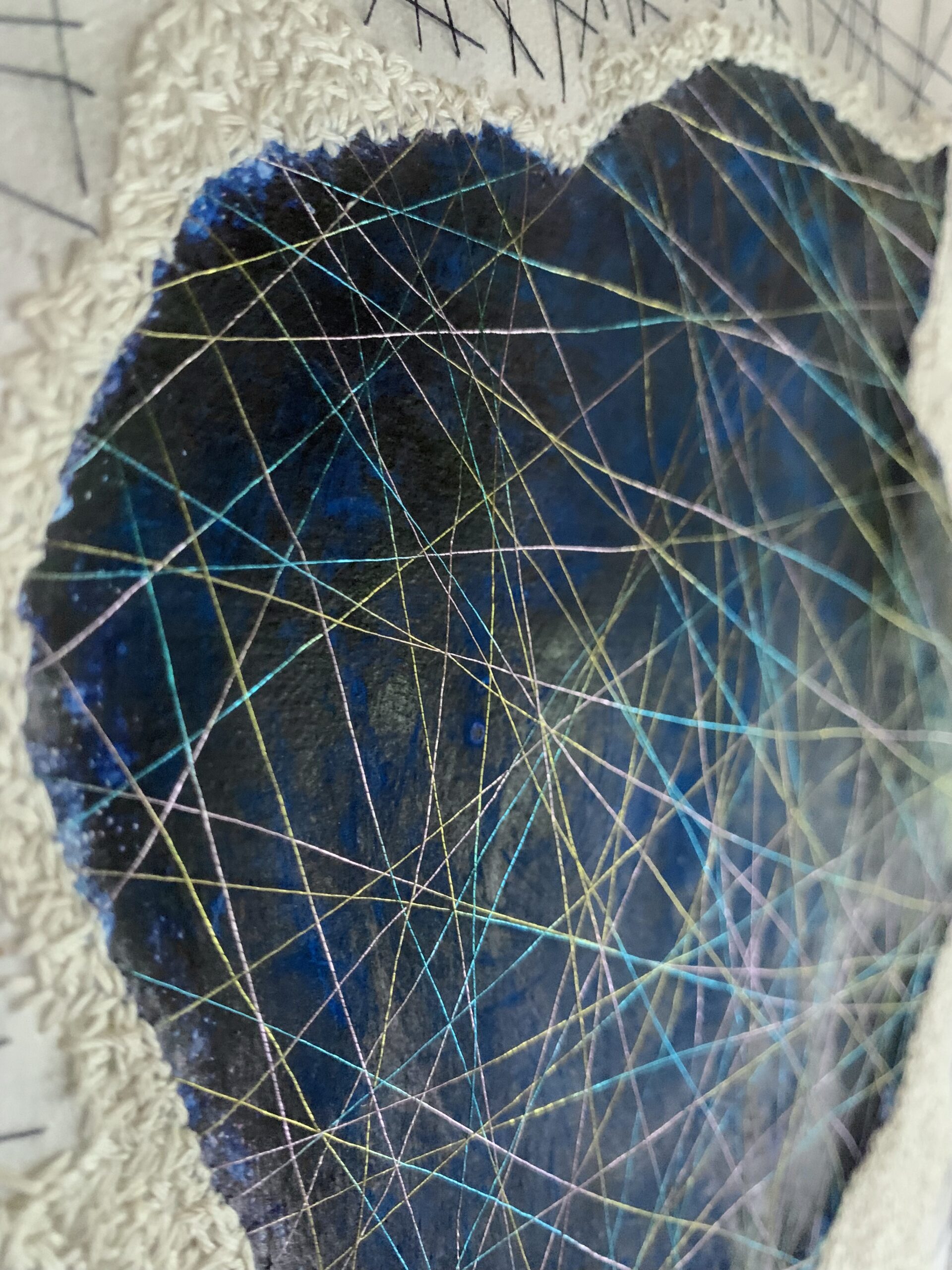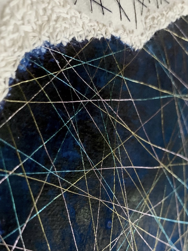 acrylic, pastel & thread on loose canvas & paper